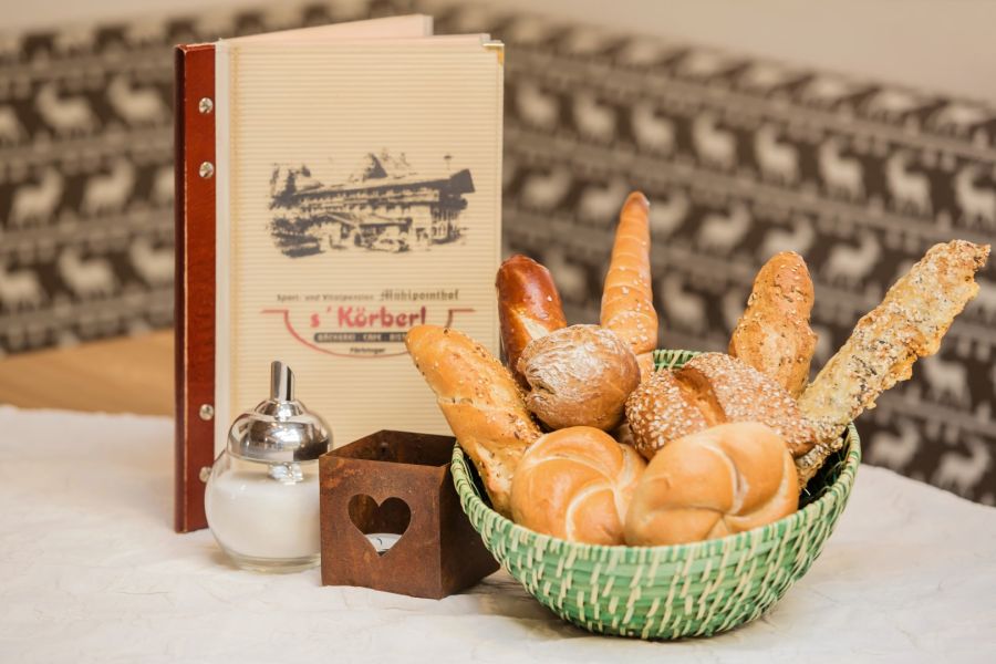 In unserem Café "s’Körberl" bieten wir Ihnen Köstlichkeiten aus eigener Produktion in unserer hauseigenen Meisterbackstube an. Zudem können Sie zwischen vielen regionalen Spezialitäten aus unserer Speisekarte wählen. Wir verwenden ausschließlich TIERWOHL Fleisch aus Österreich und wissen woher unser „Schnitzel“ kommt! Ebenfalls aus der hauseigenen Konditorei kommen unsere Mehlspeisen.