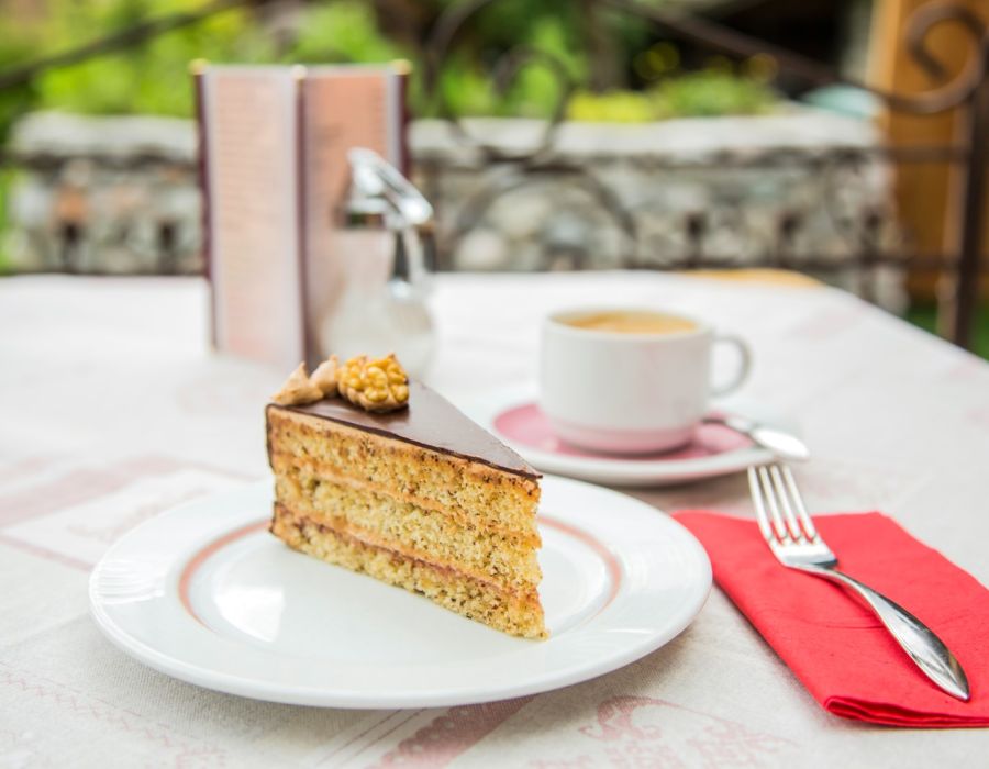 Verweilen Sie auf unserer Sonnenterrasse mit Garten und Spielplatz und genießen Sie den Moment. Nach einem aktiven Tag in den Bergen, beim Wandern, Klettern, Biken und vielem mehr, ist es umso schöner zu entspannen und sich mit einer süßen Köstlichkeit zu belohnen. Im Winter eignet sich unser Café perfekt, um ein geselliges Beisammensein mit den Liebsten bei einer Tasse Kaffee und Kuchen zu genießen.