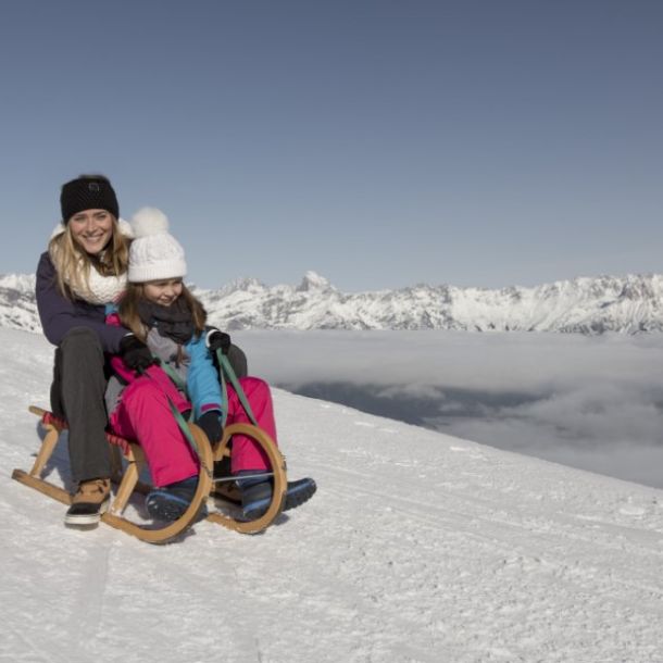 mehrere Rodelstreckenund schöne Spazierwege für ausgedehnte Winterwanderungen